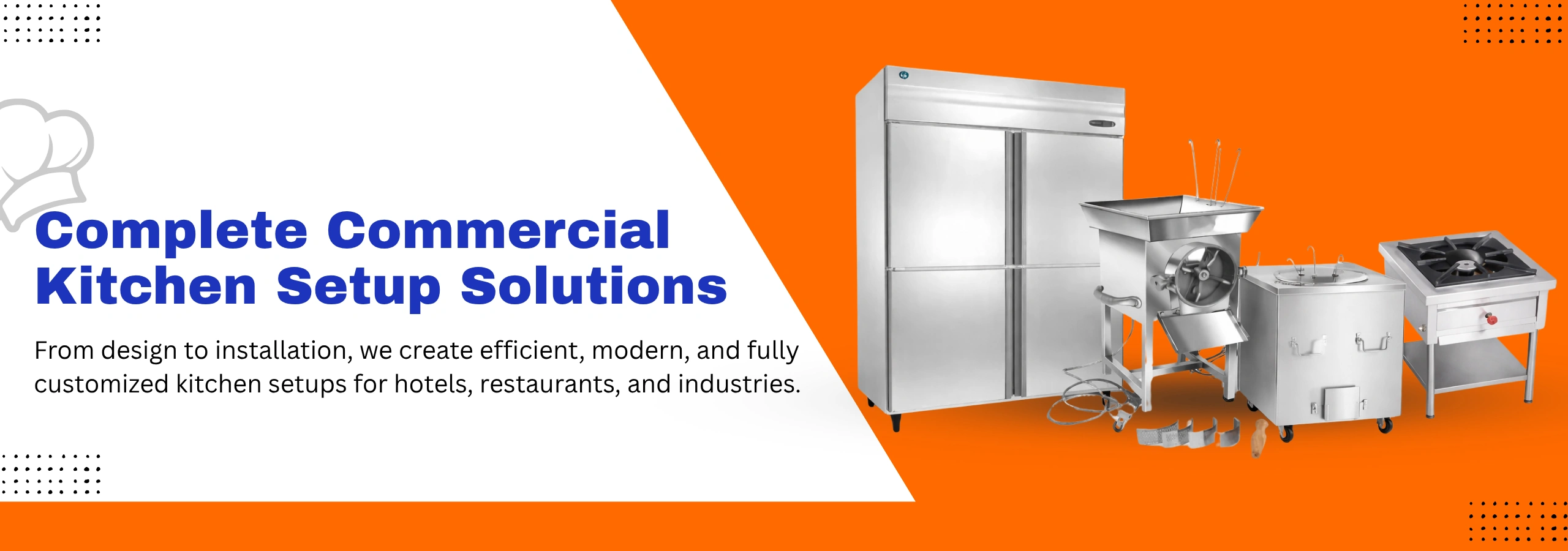 We understand that every kitchen is unique. That’s why we provide customized commercial kitchen solutions that ensure maximum efficiency, hygiene, and long-term performance for hotels, restaurants, canteens, bakeries, and industrial kitchens.