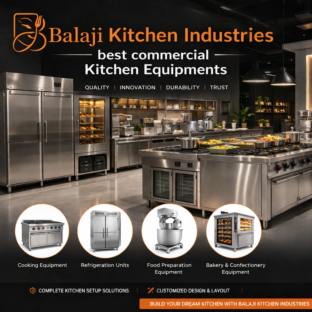 Balaji Kitchen Industries is a leading manufacturer and supplier of commercial kitchen equipment, specializing in complete commercial kitchen setup and premium imported kitchen equipment across India. From concept to execution, Balaji Kitchen delivers innovative, durable, and high-performance kitchen solutions tailored for restaurants, hotels, cafes, bakeries, and industrial kitchens.
